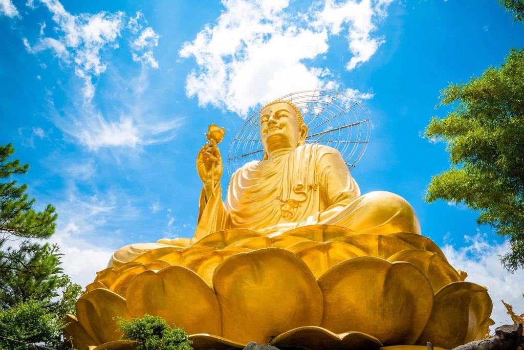 Статуя золотого Будды и храмовый комплекс.