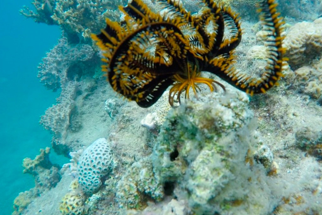 - Утро: трансфер к южному порту (10–15 минут), пересадка на катер и отправление в море.