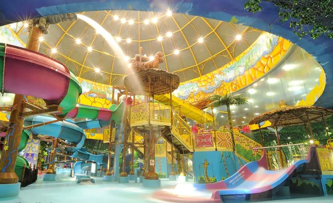 Вход в парк оформлен в виде средневековой башни, а сам комплекс построен по образцу лучших европейских и американских парков. Аттракционы и тематические зоны гармонично вписаны в тропический пейзаж, создавая неповторимую атмосферу праздника.